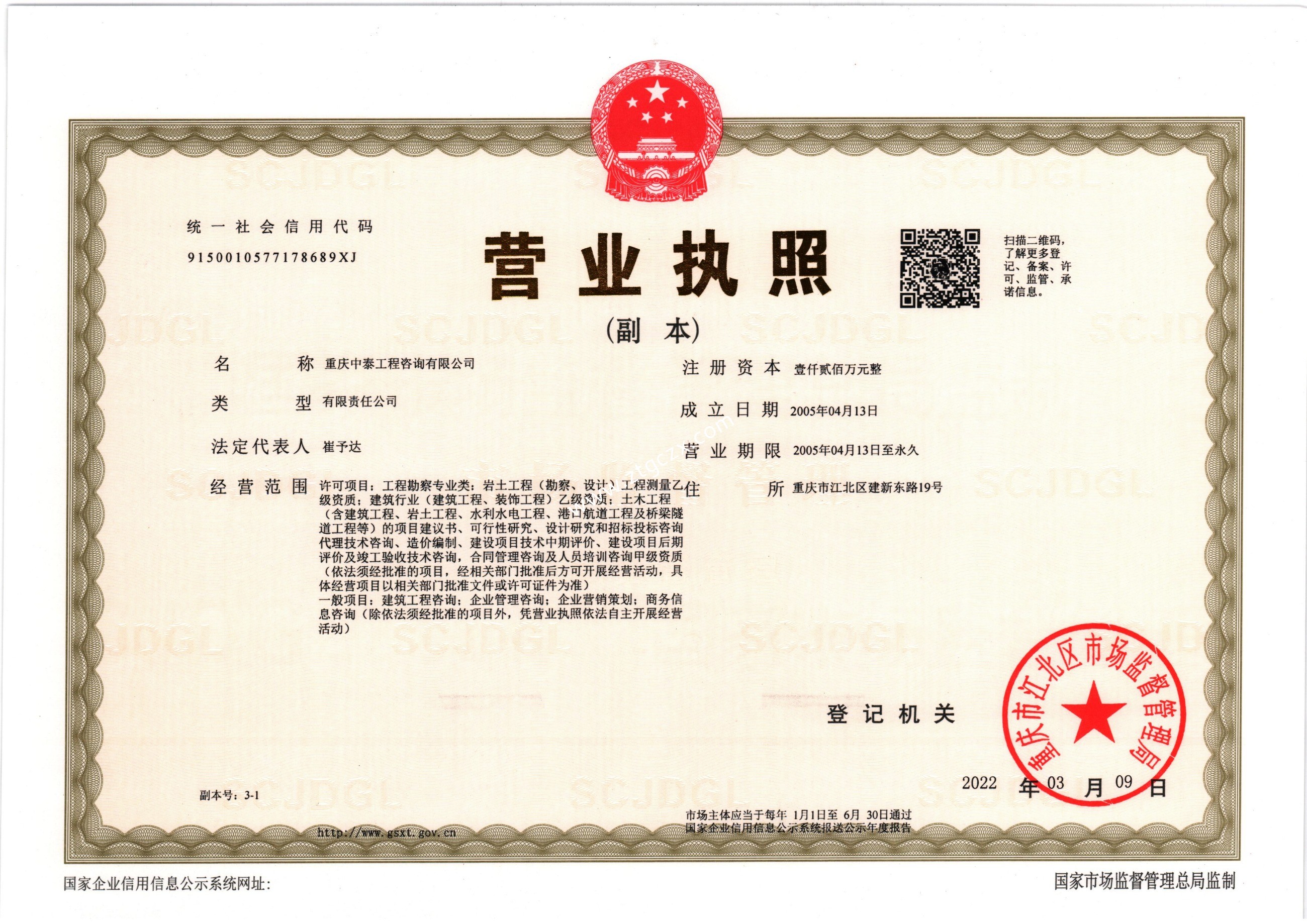 重慶中泰工程咨詢有限公司營業(yè)執(zhí)照